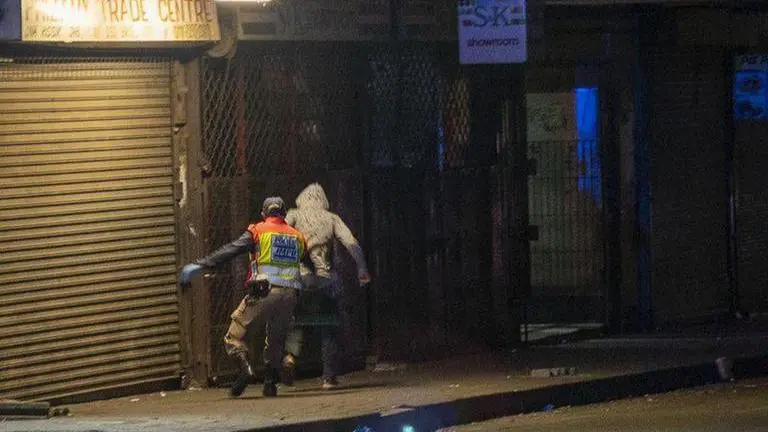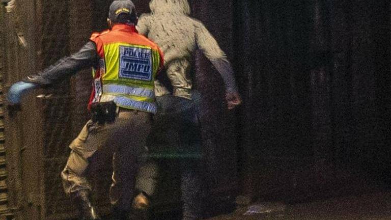 After daybreak, police and military forces surrounded a few dozen homeless people in downtown Johannesburg close to the main train station.