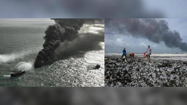 The Sri Lanka Air Force had dropped fire dousing material on Saturday morning. Authorities said that the fire was under control and the possibility of the ship’s sinking was less. The Ministry of Fisheries has assured that there was no reason to fear consuming fish as the fishing in the affected area had been banned from last Sunday. The fishermen affected by the fishing ban are to be provided livelihood support, the Sri Lankan Ministry said. MEPA officials had said a large number of dead sea turtles, birds and small fish could be seen along the coast.