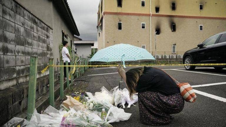 One of the survivors, an animator, told Japanese media he jumped from a window of the three-story building gasping for air amid scorching heat after seeing a “a black mushroom cloud” rising from downstairs.