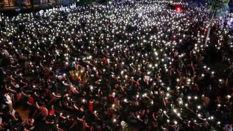"When the sky is golden bright the people will rise to greatness in the land. Down with feudalism. Long live the people!" they shouted and led the rally in raising three-fingered salutes, their symbol of defiance.