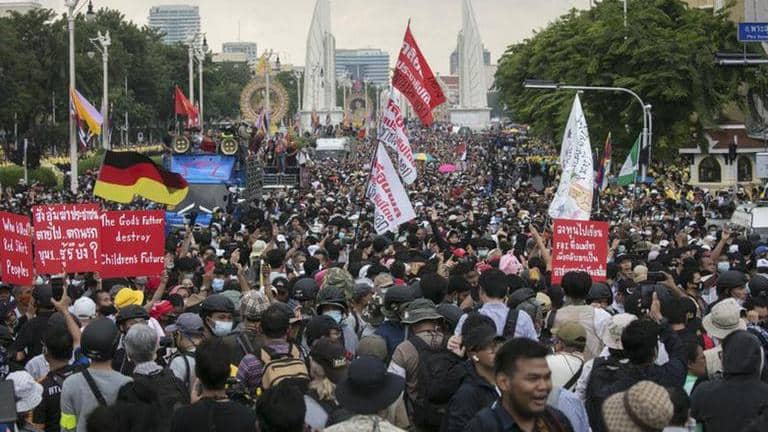 Pro-democracy protesters in Thailand pushed through several sets of police barricades on Wednesday as they sought to take their grievances to Government House, the seat of the Thai government.