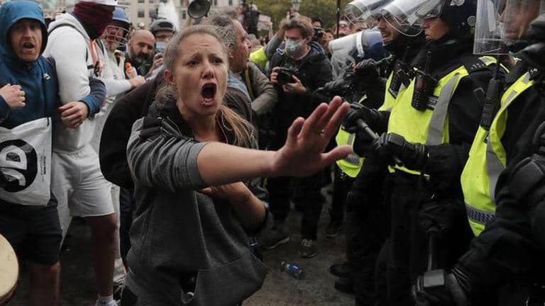 Police clash with protesters at UK COVID-19 demonstration | Image: self