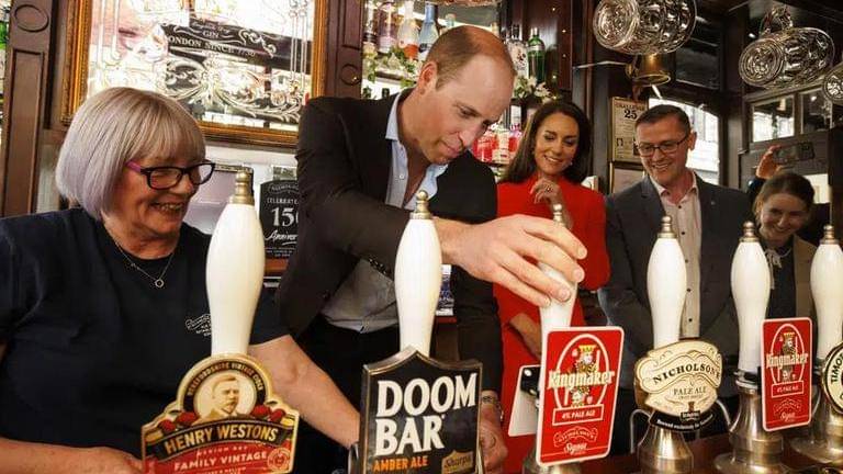 The pair took their first trip on the Elizabeth line, named after Queen Elizabeth II and the latest line on London's busy train network. They then stopped at the historic Dog and Duck pub, where William went behind the bar and poured a pint of Kingmaker, a pale ale brewed to celebrate the coronation.