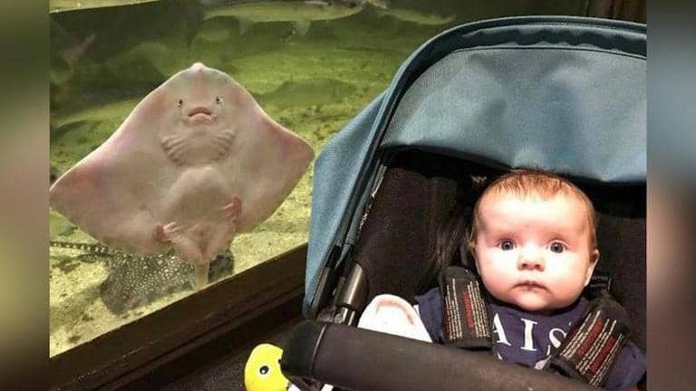 Stingray photobombs baby's photo, shows same expression as child in the viral pic, See