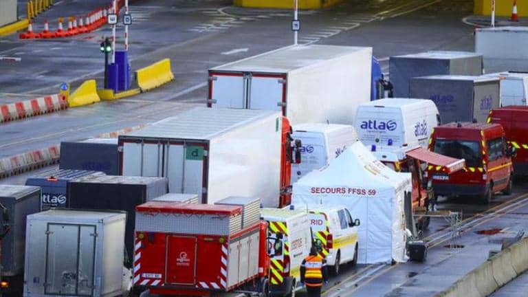 Trucks, buses and cars inched slowly past checkpoints at the English port of Dover and headed across the Channel on Thursday to the French port of Calais after France partially reopened its borders with Britain following a scare over a rapidly spreading new virus variant. The travelers are being held up by the slow delivery of coronavirus tests which have been demanded by France following the news of the new variant.