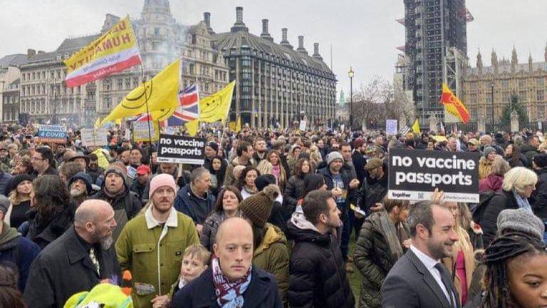 More than thousands of protestors gathered at United Kingdom's national capital, London in a protest against the latest COVID-19 restrictions & vaccine passport