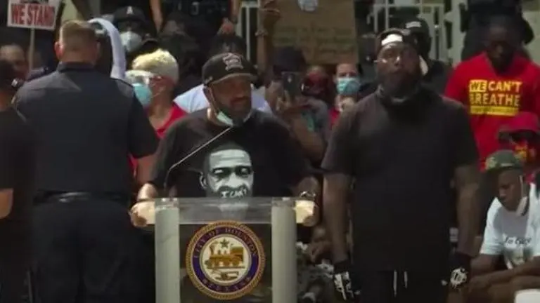 Houston-area rappers Bun B and Trae tha Truth helped organize a rally in memory of George Floyd, a native of the city who died after a Minneapolis officer pressed his knee into his neck for several minutes even after he stopped moving and pleading for air.