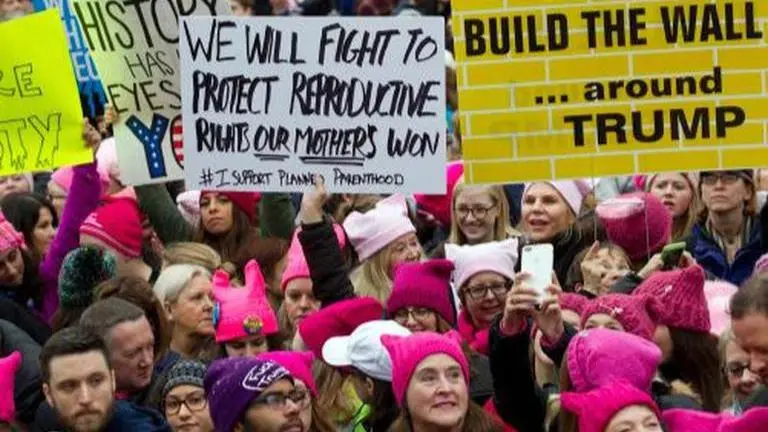 Dozens of anti-President Donald Trump posters were seen on the fencing of Lafayette Square in Washington, DC.