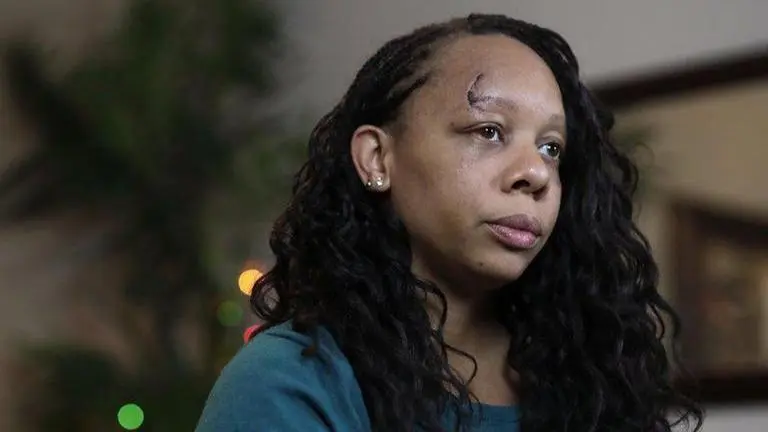 Ratlieff sat down with The Associated Press for an interview Friday, nearly two weeks after a photo of her injured face went viral. Twenty-four hours after the incident, the haunting selfie documented her purple right eye swollen shut, her left eye puffy and half open and a thick bandage wrapped around her forehead. She is seeing specialists to assess whether there's long-term damage from the cranial fracture.