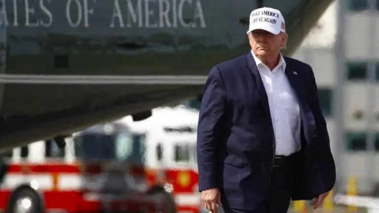 U.S. President Trump boarded Air Force One at Morristown Municipal Airport in New Jersey on Sunday, en route to Washington D.C.