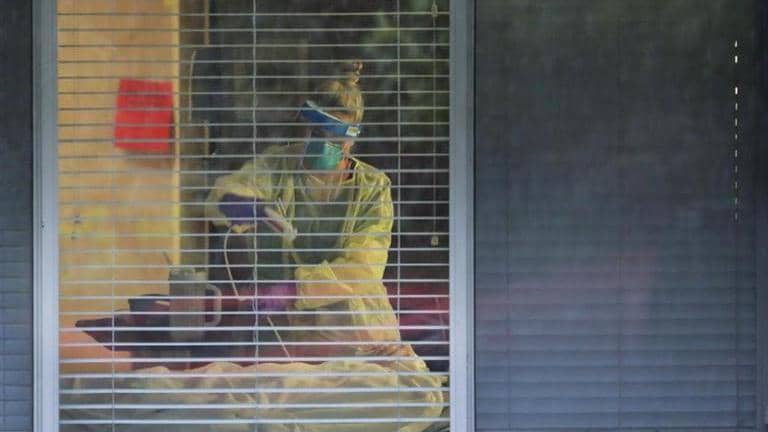 The patient’s blood oxygen is down to 50%, life threatening. A ventilator is available. But doctors have noticed that some patients do better on oxygen without sedation or intubation. When that doesn’t work, they turn the man on his stomach, another strategy that seems to help breathing.