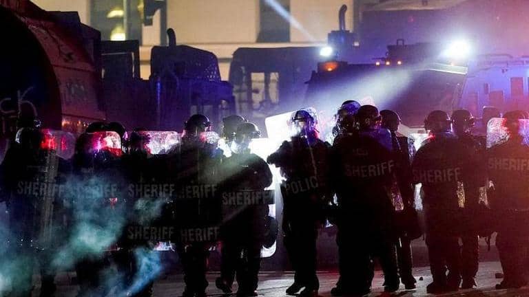 Earlier in the week, sheriff’s deputies shot pepper balls at protesters and arrested them when they failed to quickly leave after being told they were breaking curfew. But officers in an armored vehicle with “Sheriff” on the side were also recorded at night tossing water bottles to men carrying rifles.
