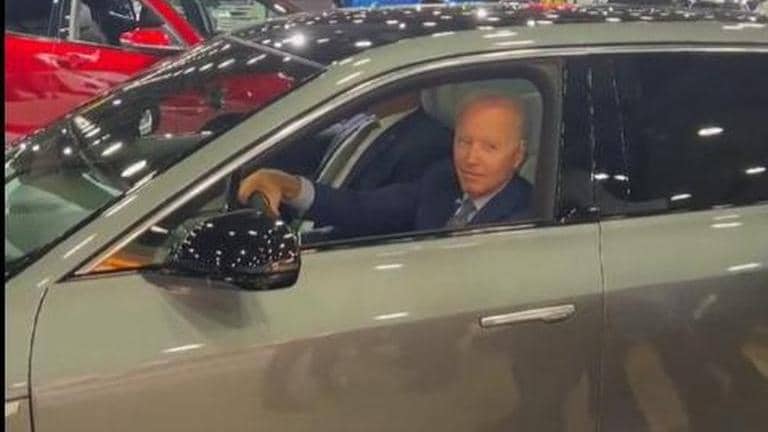 In a kind and one of the rarest gestures, US President Joe Biden, who is a big fan of the electric car, offered a ride to Washington to the onlookers and the reporters present during an automobile show on Wednesday. The President was seen driving a high-end electric vehicle Cadillac Lyriq-- a semi-autonomous that comes with hands-free driver assistance technology-- which costs $61,795 (Rs 49 lakh). As the car drives slowing across the carpet in the convention hall of the Detroit auto show, Biden can be seen saying, "Anyone wants a ride to Washington?" "Come on, jump in. I'll give you a ride to Washington," he said.