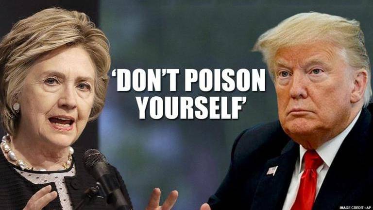 Former U.S. Secretary of State Hillary Clinton on Friday lambasted her 2016 election rival US President Donald Trump for his bizarre medical suggestion to healthcare professionals about injecting people with disinfectants to cure Coronavirus. Clinton urged the people not to poison themselves based on the President's statement.