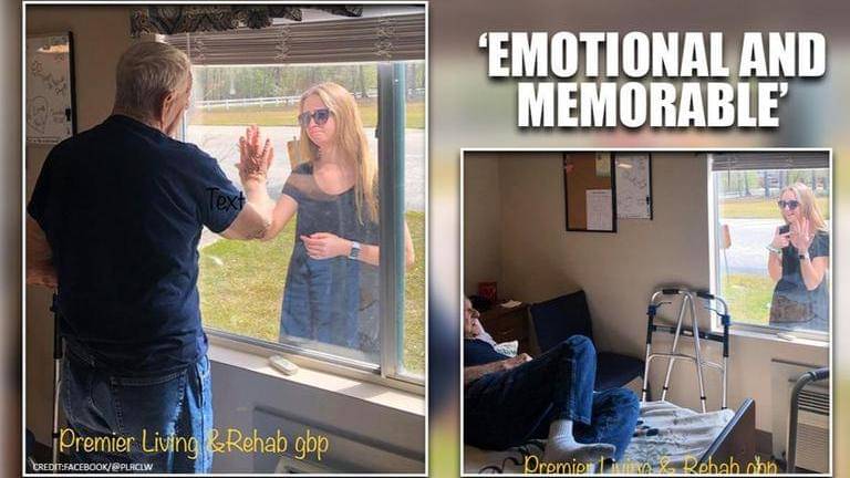 Covid-19: US women shows engagement ring to grandfather through glass window