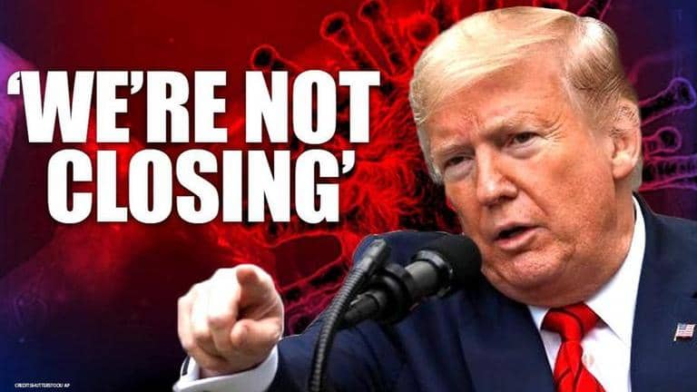 US President Donald Trump has assured that the country is neither closing now planning to halt businesses again while coronavirus infections near 3 million.