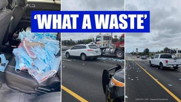 While healthcare workers around the world are struggling with the shortage of PPEs, hundreds of face masks were recently found littered on a highway in California. While face masks have been made compulsory in several countries in a bid to contain the spread of COVID-19, the California Highway Patrol took to Facebook recently to share pictures of hundreds of medical masks littered on a state highway. The CHP informed that the incident led to chaos on the road and caused a traffic jam as passerby stopped to pick them up.