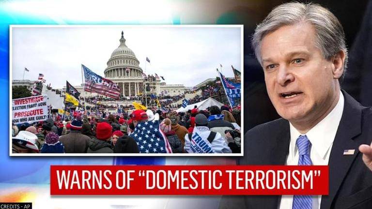 FBI Director Christopher Wray termed the January riot at the US Capitol as “domestic terrorism”. He further warned of growing ‘homegrown violent extremism’.
