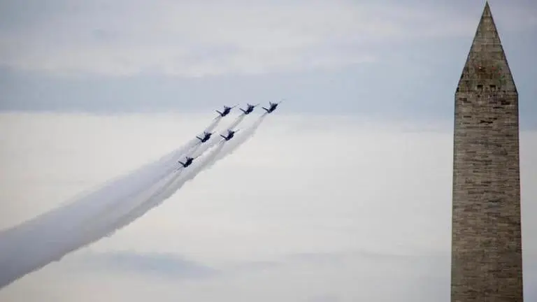 Flyover by US Air Force Thunderbirds, Navy Blue Angels