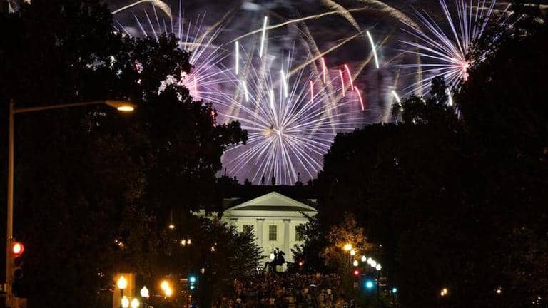 Trump's speech was punctuated by musical selections including "You're a Grand Old Flag" and fireworks display on the National Mall, with some of the fireworks spelling out "Trump" and "2020."