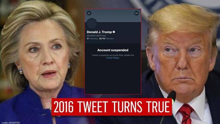 Hillary Clinton shares 2016 tweet after Twitter bans Donald Trump's account permanently