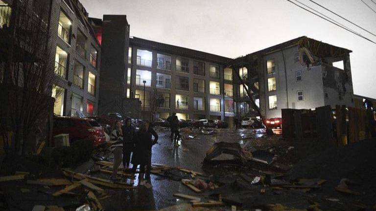 At least two tornadoes touched down in central Tennessee, including one that ripped across downtown Nashville and caused about 40 buildings to collapse around the city, police said.