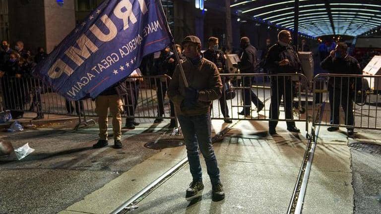 The messages directed Trump fans to converge at a downtown intersection where hundreds of protesters from the opposing candidates’ camps faced off Thursday afternoon. Pennsylvania is a crucial battleground state where former Vice President Joe Biden's jumped ahead Friday and in a televised address later predicted a victory that would give him the presidency.