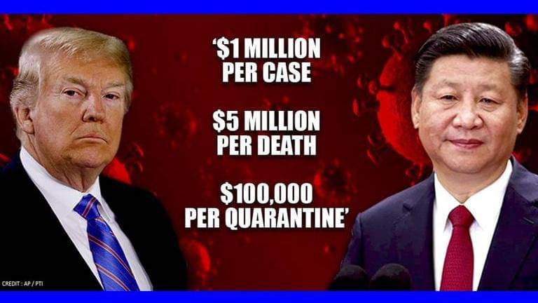 China owes us civil compensation - at least for negligence - a fair and reasonable amount, "which I recommend match our standard for 9/11, but no less than USD1 million dollars for every American who tested positive for Coronavirus, USD5 million for every American who died, and USD100,000 for every American who has to be 'locked down'," he said.