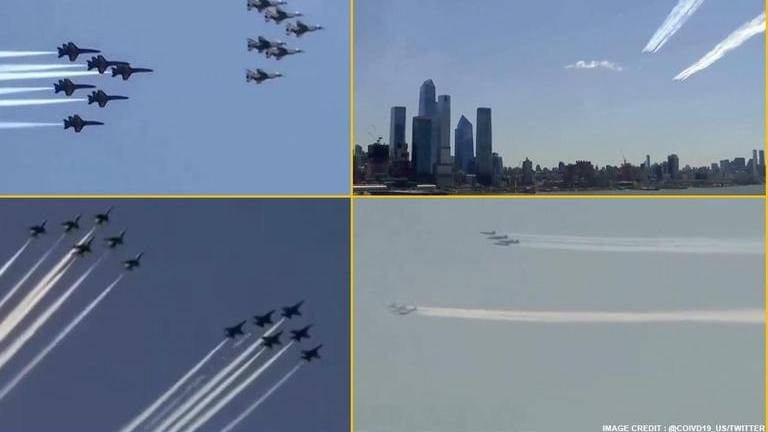 With one of its kind gesture, United States military flight squadrons paid tribute to all the health care workers, first responders and other essential workers on April 28. According to reports, twelve fighter jets of the air’s force’s Thunderbirds and navy’s Blue Angels streaked above New York’s Big Apple in a “collaborative salute”.