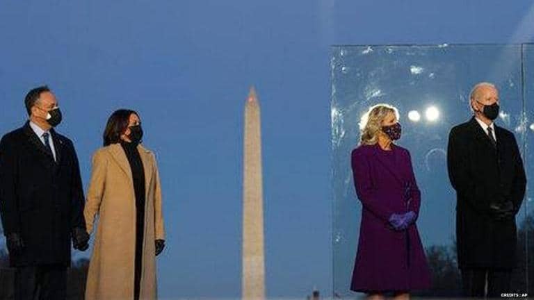 On the eve of the historic inauguration, US President-elect Joe Biden and wife Dr. Jill Biden, along with Vice President-elect Kamala Harris and her husband Doug Emhoff gathered on the National Mall in Washington DC for a COVID memorial honouring. During the event, while Biden encouraged healing and said that part of the process was to remember those who had been lost, Harris, on the other hand, didn’t speak but her attire offered a subtle tribute to the nation’s continuing struggles against the ongoing pandemic. Incoming First Lady Dr. Biden’s attire also reflected hope for change.