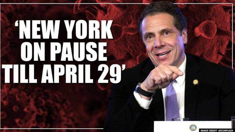 Governor Andrew Cuomo has declared that the lockdown in New York state is extended till April 29 after witnessing 600 deaths in a single day - 2nd highest