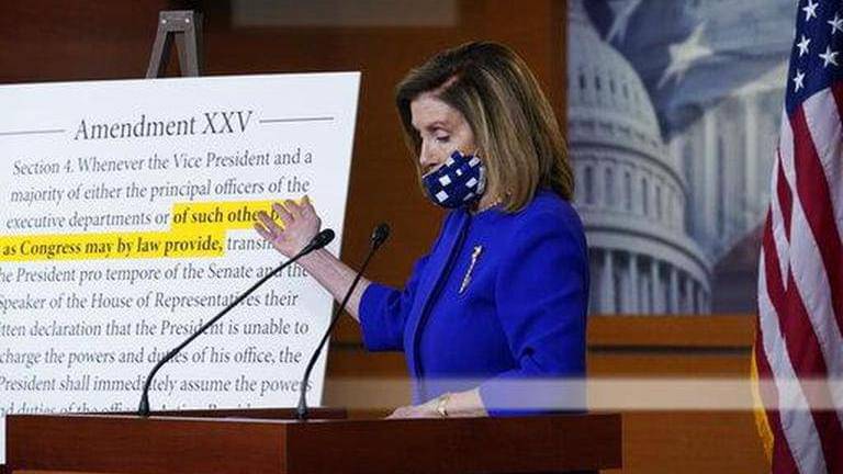 Pelosi made her comments at a press conference where she unveiled legislation that would allow Congress to intervene under the 25th Amendment to the Constitution to remove a president, but insisted it wasn't about President Trump.