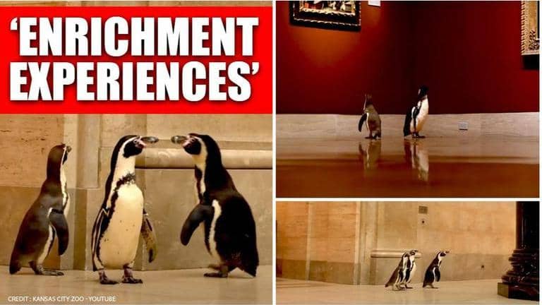 While the museums remain closed for humans amid coronavirus lockdown, the Penguins of Kansas City Zoo, Missouri, took an unexpected trip to Nelson-Atkins Museum of Art. The penguin-trio piqued people’s attention, not only because the birds visited a museum but also they were seen wandering and admiring the artwork. A video shared by the Kansas City Zoo on YouTube showed the birds roaming around freely and ‘appreciating’ fine art and culture.