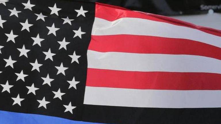 The police union ordered and distributed the masks emblazoned with black-and-white American flag with a blue stripe across the middle. The symbol is associated with the Blue Lives Matter movement, a display of unity among police officers in response to the national Black Lives Matter movement.