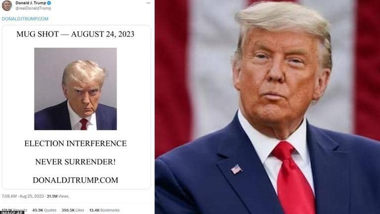 Former President Donald J. Trump returned to X, the social media platform formerly known as Twitter, on Thursday night firing off his first post in two-and-a-half years shortly after his release from Atlanta jail. In his first post on X since Twitter suspended his account following the US Capitol chaos on January 6, 2021, Trump wrote, "Never surrender", with his mugshot image along with a link to his website, which directs to a fundraising site.