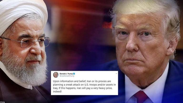 Earlier in the day, Trump tweeted: "Upon information and belief, Iran or its proxies are planning a sneak attack on US troops and/or assets in Iraq. If this happens, Iran will pay a very heavy price, indeed!"