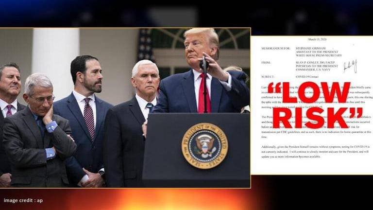 Donald Trump's official White House physician confirmed about his exposure to positive cases of Coronavirus, however, ruled that the US President does not require testing, citing "low risk". The White House physician further said that there was no need for home quarantine, despite the US President coming in contact with two individuals now tested positive for the virus.