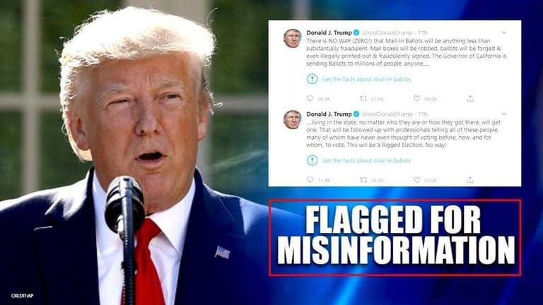 Social networking site Twitter, on Tuesday, flagged US President Donald Trump's tweet regarding 'mail-in ballots', which is a topic of contention with the Presidential elections set to take place in November this year. This is the first such move and is done so to prevent the spread of misinformation.