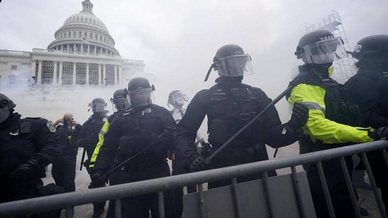 Thousands of rioters bent on breaking into the Capitol rushed a few dozen police officers guarding the West front of the building. Armed with metal pipes, pepper spray and other weapons, the mob pushed past the thin police line.