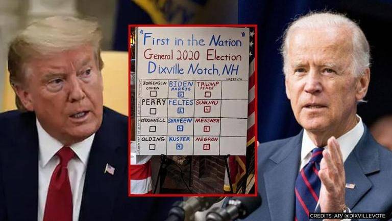 In the first ballot results of the US Election 2020, former US Vice President and Democratic Challenger Joe Biden won in the tiny town of Dixville Notch in New Hampshire in a sweep by getting all five votes while Trump got none. The ballots in the town with 12 residents at the US-Canada border, were cast in the minutes after polls opened at midnight following its own tradition.