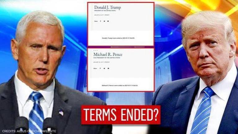 After US Capitol Seige, State's House Dept website says President Donald Trump and Vice President Mike Pence terms ended, cites technical issues
