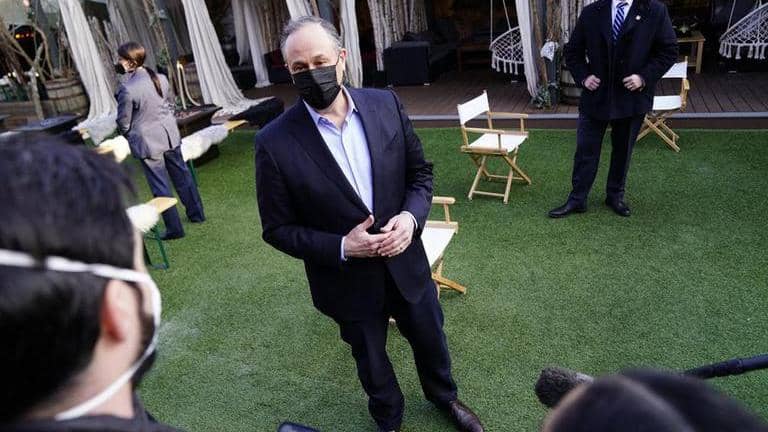 Emhoff said he's talking to administration experts to learn the issues and not just visiting museums and libraries in Washington. He's also experiencing the challenges of a virtual classroom.