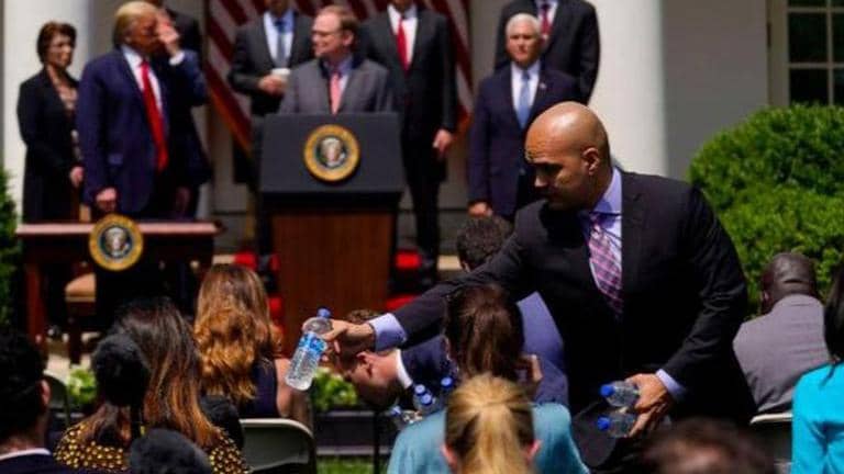 Watching the event on television made her angry, CNN medical correspondent Elizabeth Cohen said later.“This is outrageous,” she said. “Those chairs should have been far apart. There was no reason to put them together, except so that President Trump could telegraph a false message.”