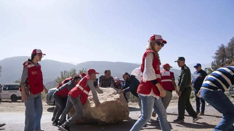The Moroccan military deployed aircraft, helicopters and drones. Emergency services mobilized aid efforts to the hardest-hit areas, but roads leading to the mountain region around the epicenter were jammed with vehicles and blocked with fallen rocks, slowing rescue efforts.