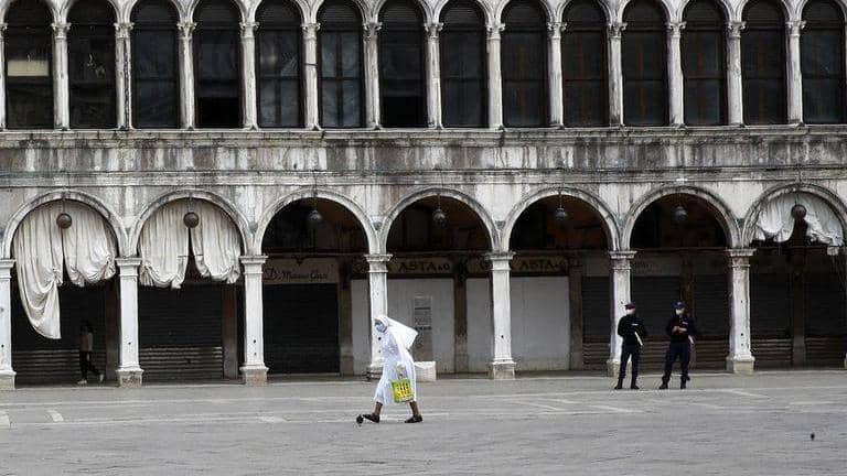 The docking of cruise ships is halted for this year. Gondoliers aren’t being permitted to glide through the canals until June 1, and many are struggling, having received just one payment of 600 euros from the government.