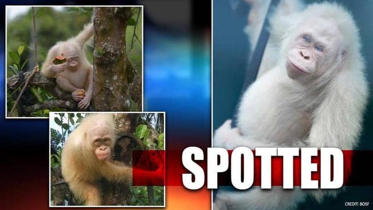 World's only Albino Orangutan spotted in Borneo rainforest a year after her release